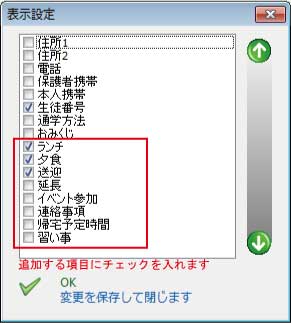 表示する項目名を追加するには、出席一覧メニューから表示設定をクリックします。