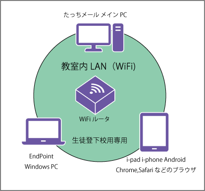 生徒の出入りする場所が離れているなお管理するPCと登下校を行うPCを分けて使いたい場合に